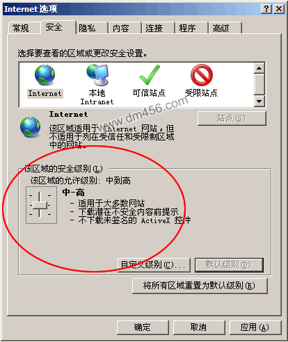 强烈建议您将IE浏览器的安全级别调成“中级”,IE6下安全级别为高级将无法观看本站视频,以下为图解