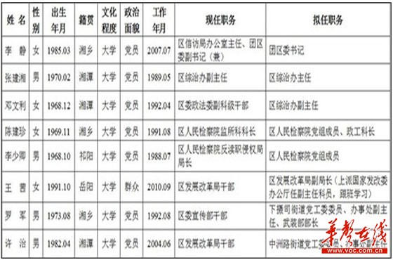 引发网友“求解释”的是4月19日公布的一则《湘潭岳塘区委管理干部任前公示》,内容是中共湘潭市岳塘区委组织部对该区8位拟任职人选进行的任前公示。