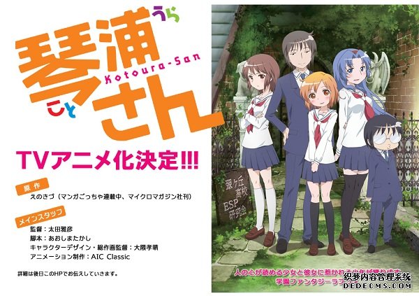 琴浦桑全集动画的导演将由太田雅彦执导,而脚本则是由青岛孝负责,人设兼作画监督则由大隈孝晴担当。而这3位STAFF则是在「南家三姐妹」、「超元气三姐妹」和「摇曳百合」3部作品中合作的搭档!如此制作必然也是值得期待一下。琴浦桑全集动画制作交给了AIC Classic公司,其代表作有「天闷部」和「放浪息子」等。
