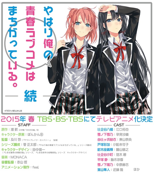 主 角:比企谷八幡,由比滨结衣,雪之下雪乃,比企谷小町,雪之下阳